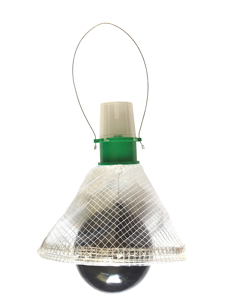 Zowel dazen als wespen beginnen hun vlucht omhoog, waardoor ze in de trechter van de val terechtkomen en vervolgens in de met vloeistof gevulde opvangbak belanden.